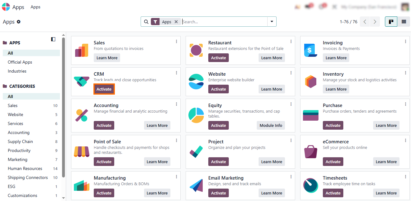 - First, activate the CRM module in Odoo 19. Then, go to CRM settings and choose the enrichment mode: on-demand or automatic for all leads.