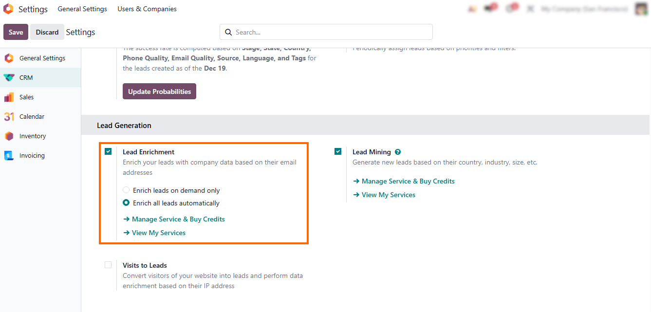 Lead Enrichment Embedded in the Odoo CRM Overview