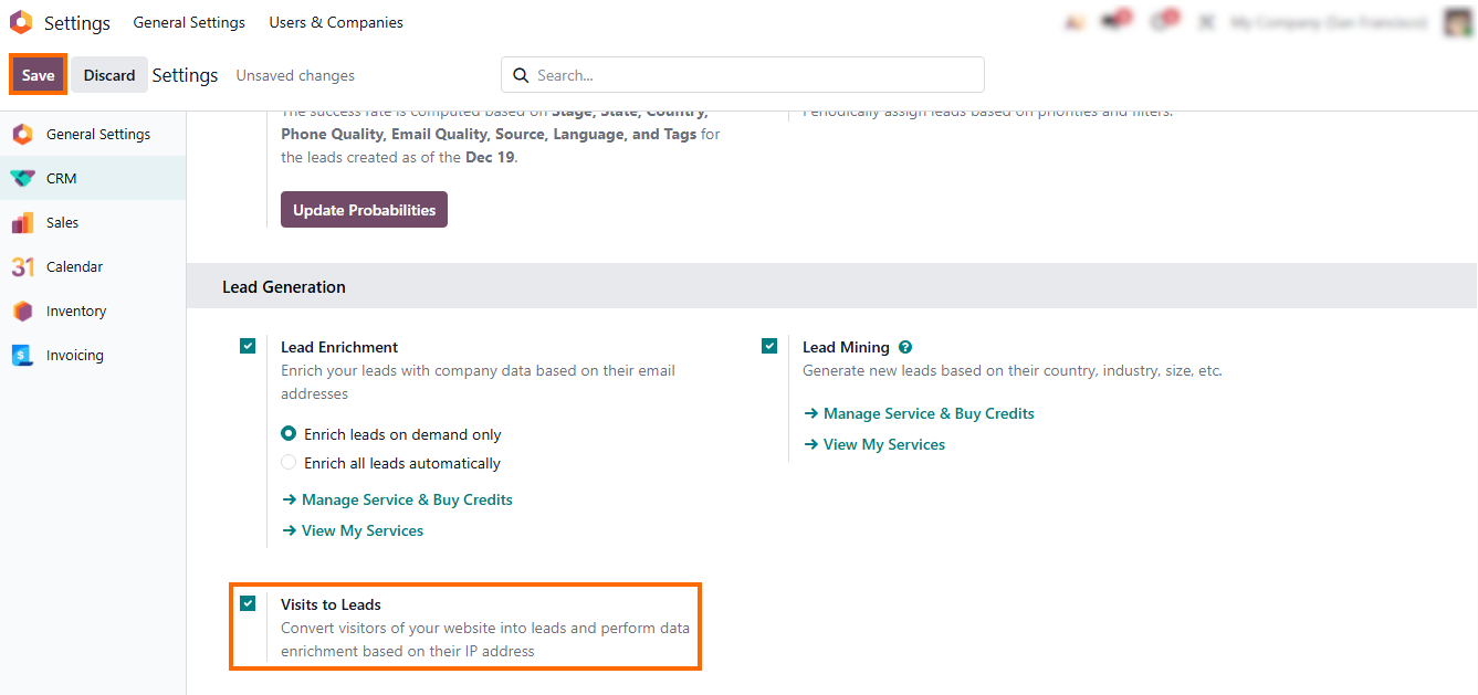to Leads” feature to convert website visitor activity into Odoo leads automatically, starting enrichment