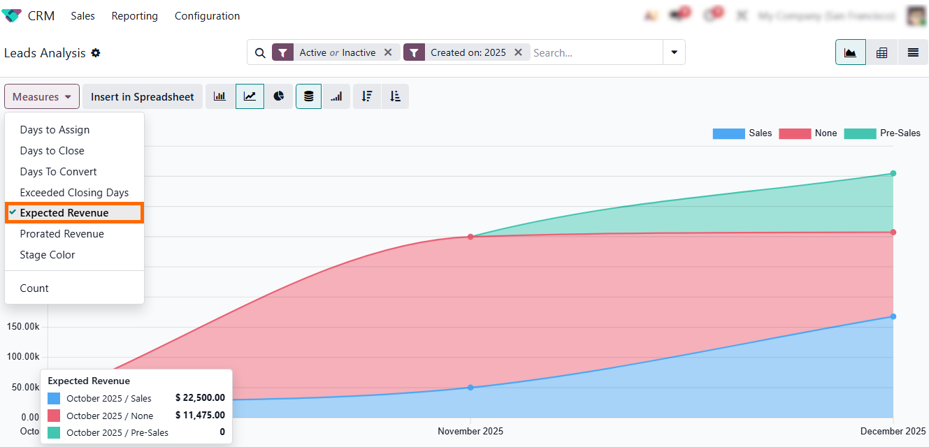 While lead enrichment in Odoo CRM significantly improves daily lead management and qualification, its true value shines in analytics and reporting. Enriched Odoo leads populated with critical details such as company size, industry, estimated revenue, sectors, and technologies used provide a richer dataset for Odoo CRM dashboards and reports. This provides insights into lead quality, pipeline performance, conversion trends, and overall ROI from lead generation efforts. By leveraging these enriched fields in Odoo CRM software, teams can segment data more precisely, identify high-performing sources during Odoo lead generation, refine Odoo lead scoring models, and accurately measure how enrichment contributes to won opportunities. The result is smarter decision-making: optimizing sales strategies, justifying IAP credit spend, and forecasting revenue with greater confidence in modern Odoo CRM solutions.