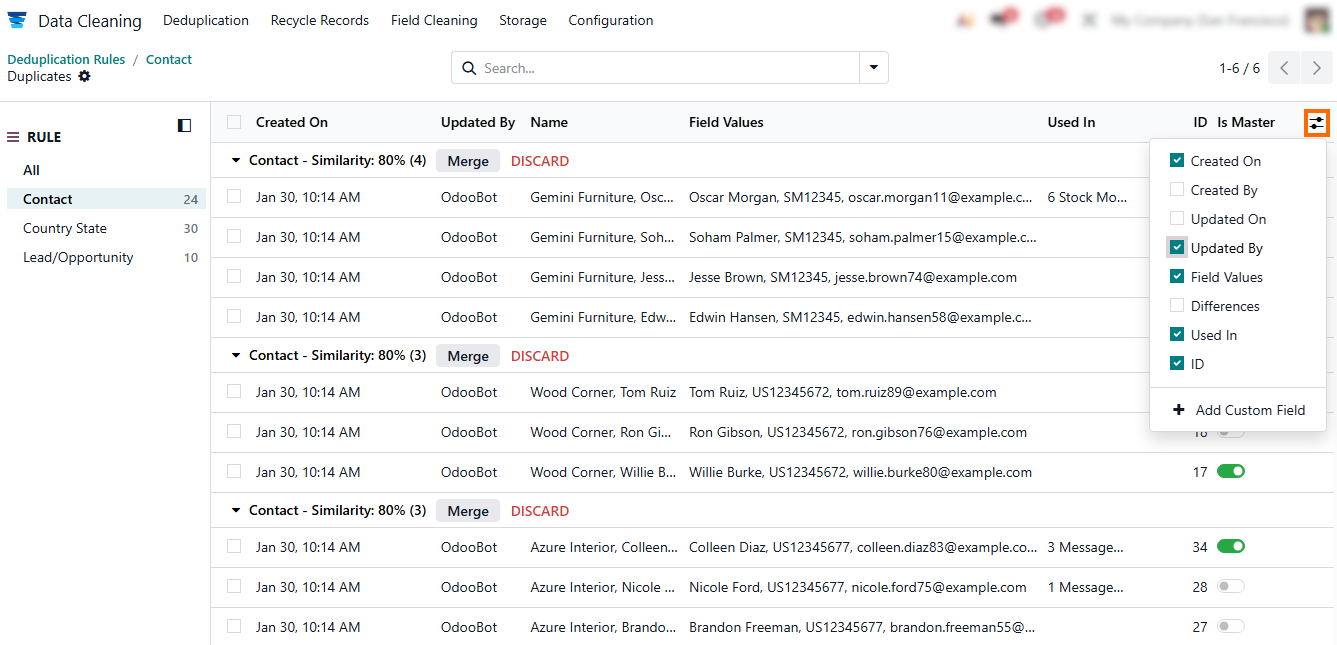 Reviewing Deduplication Results in Odoo Data Cleaning