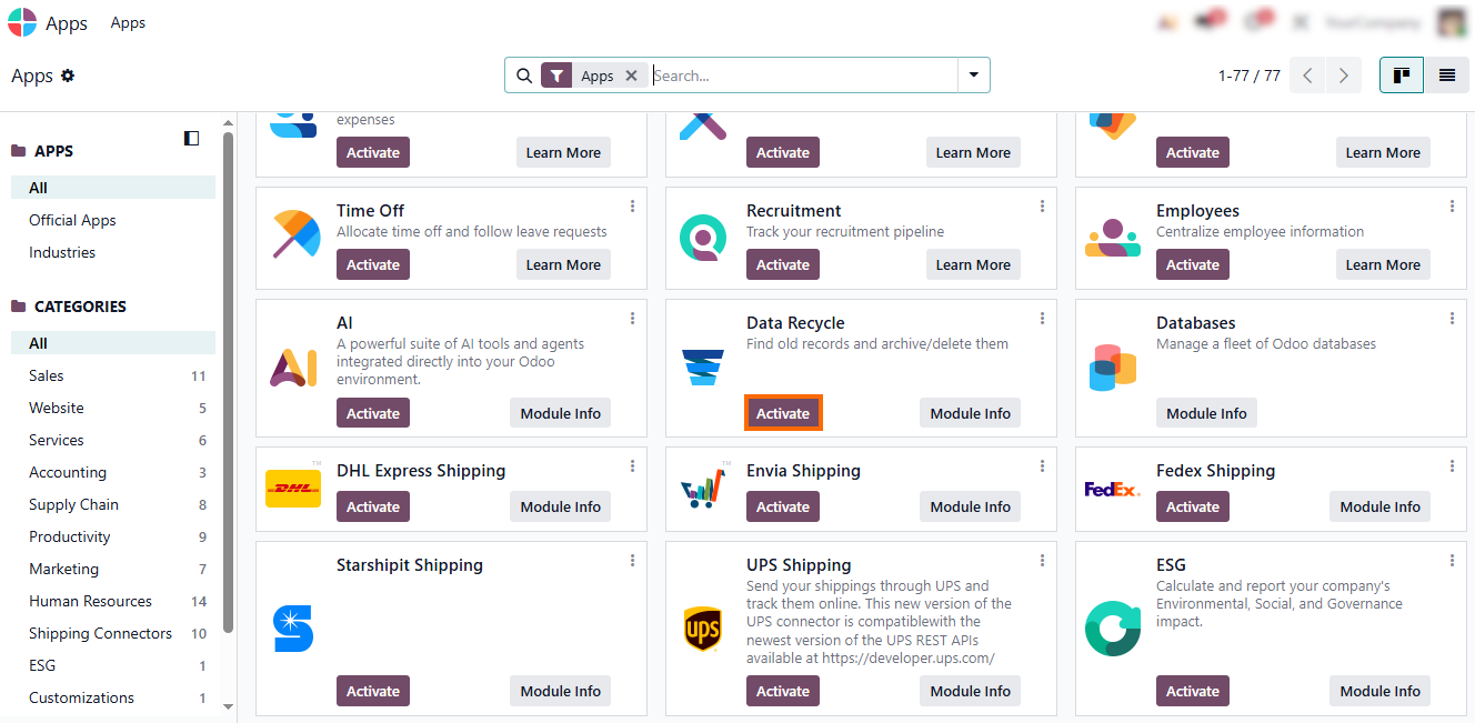activate the “Data Recycle” module by clicking the “Activate” button. This