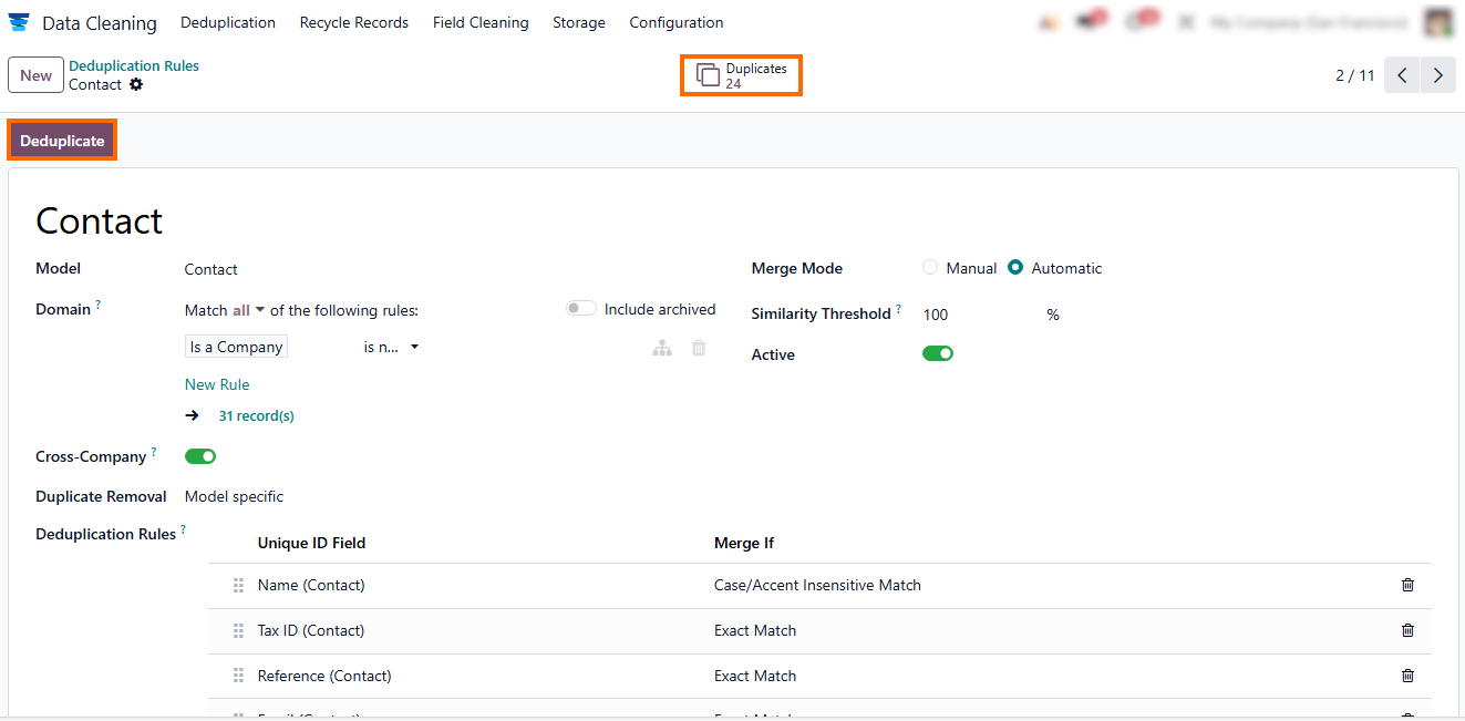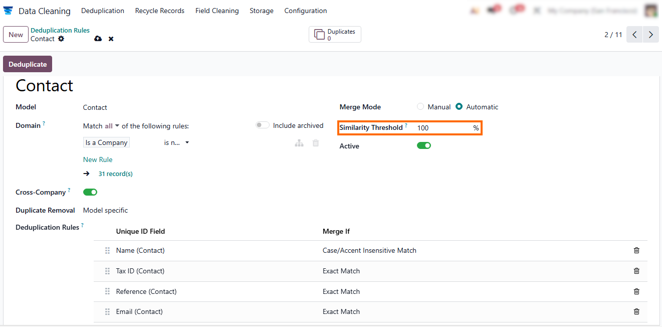 Configuring Deduplication Rules for Odoo Data Cleaning