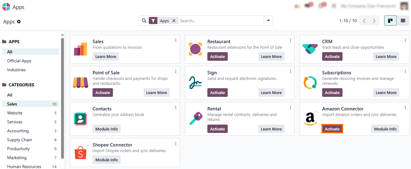 - Activate the Amazon Odoo connector to automatically reduce inventory in Odoo and create an order for processing in the ERP whenever a product is sold on the marketplace. No extra steps are required.