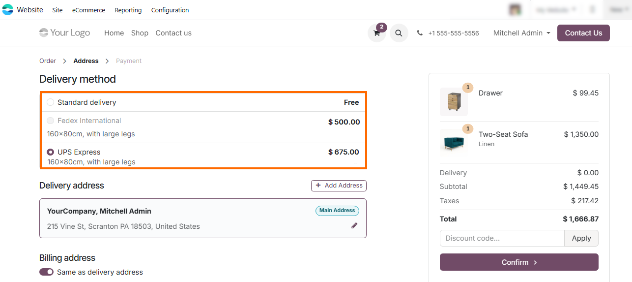 appear at checkout, so customers can instantly select the preferred Odoo shipping method. This ensures