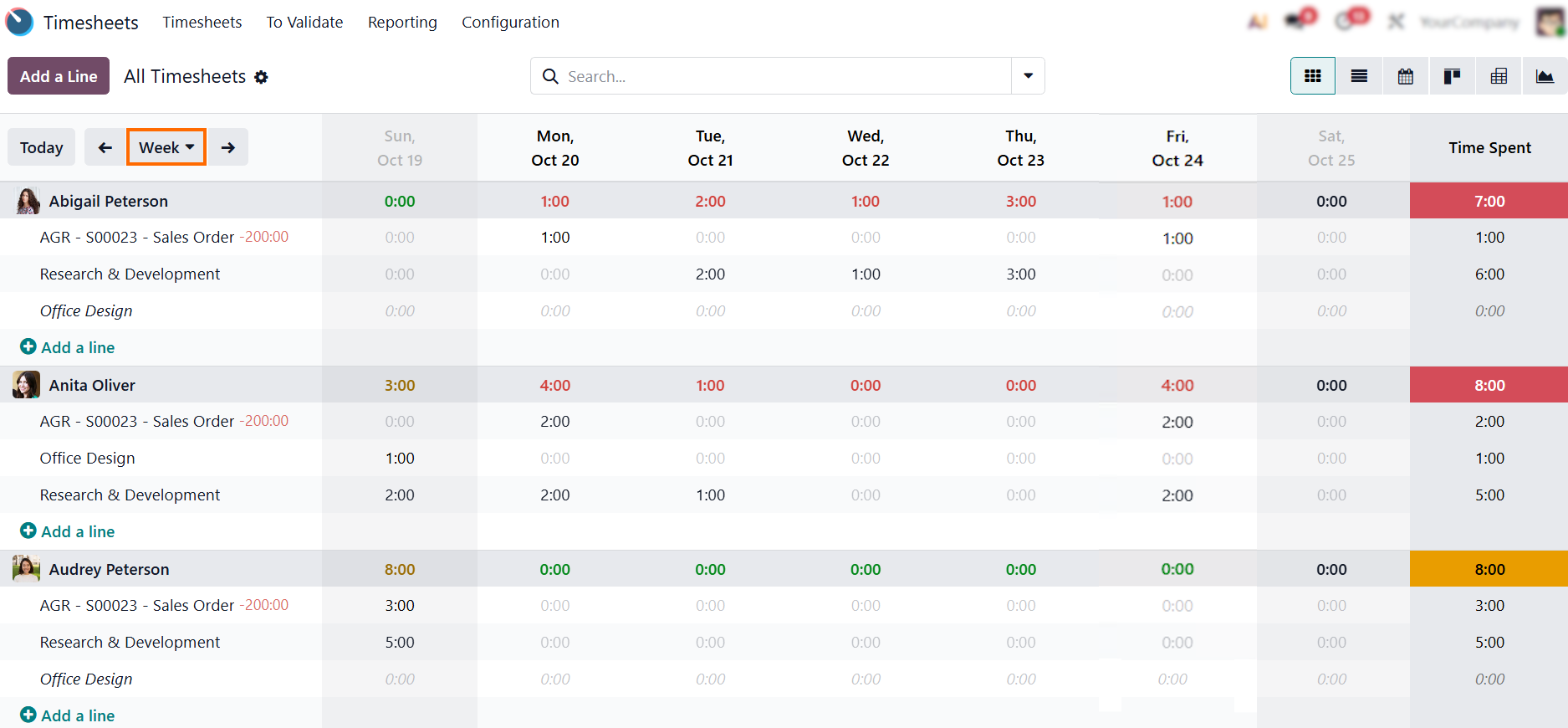 - You can also filter Odoo timesheets by day, week, or month –