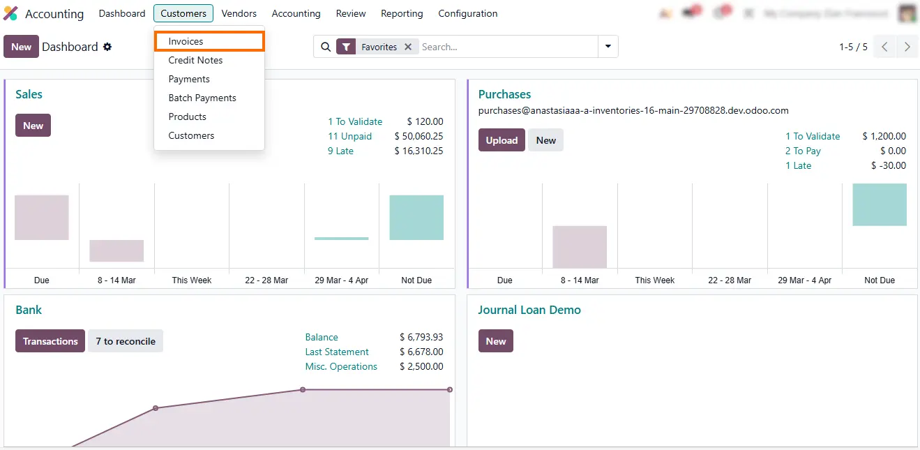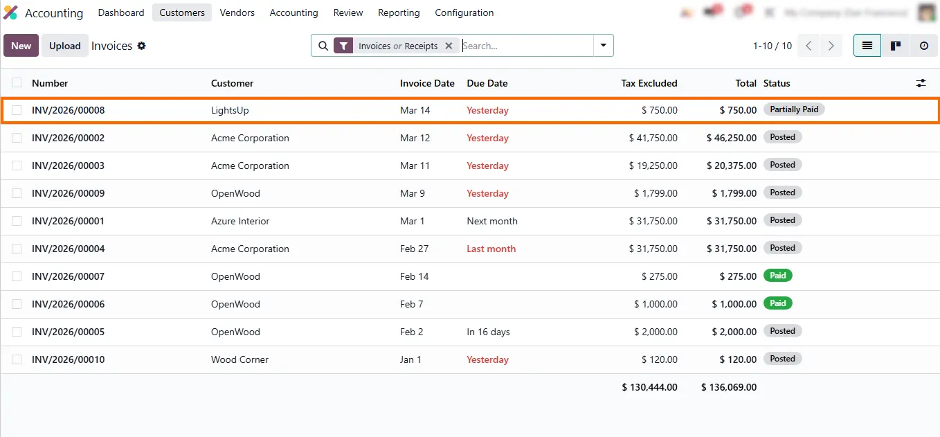 - Open the Accounting module, go to Customer Invoices, and locate the posted invoice that requires correction. All corrections start from posted invoices within this reversal process.