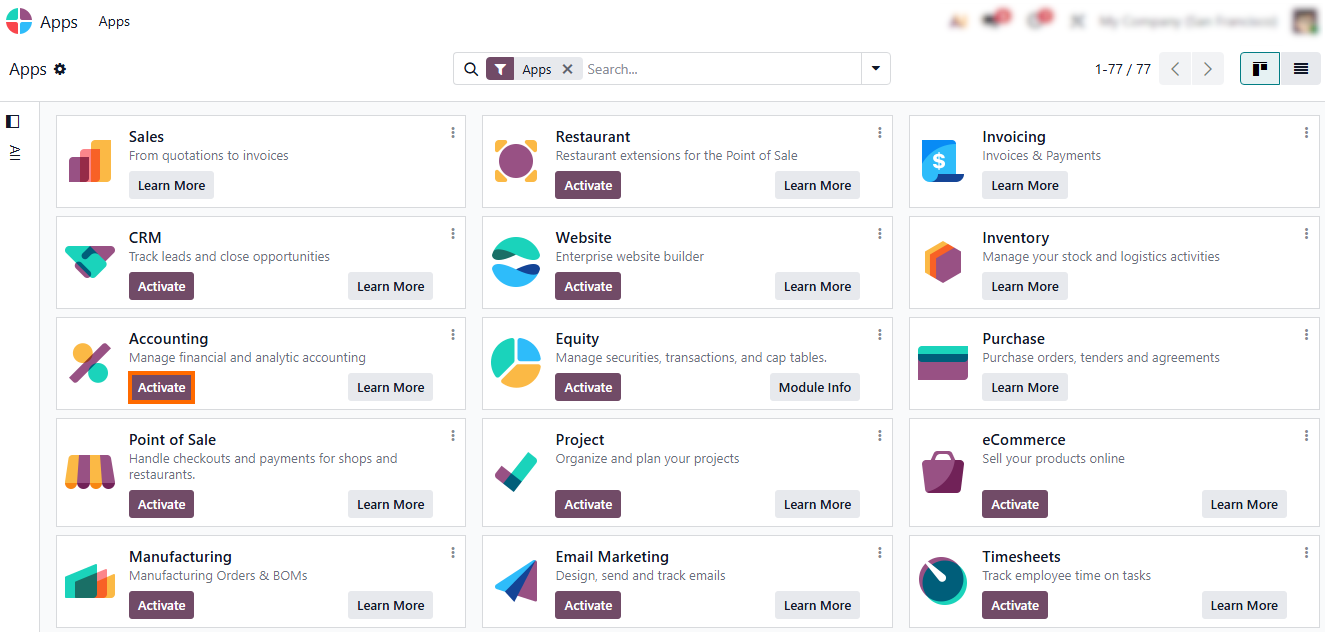 - Ensure the Odoo Accounting module is installed. This establishes the technical foundation for storno accounting in Odoo 19, enabling posted entries, structured reversals, and red storno logic without a separate storno configuration.