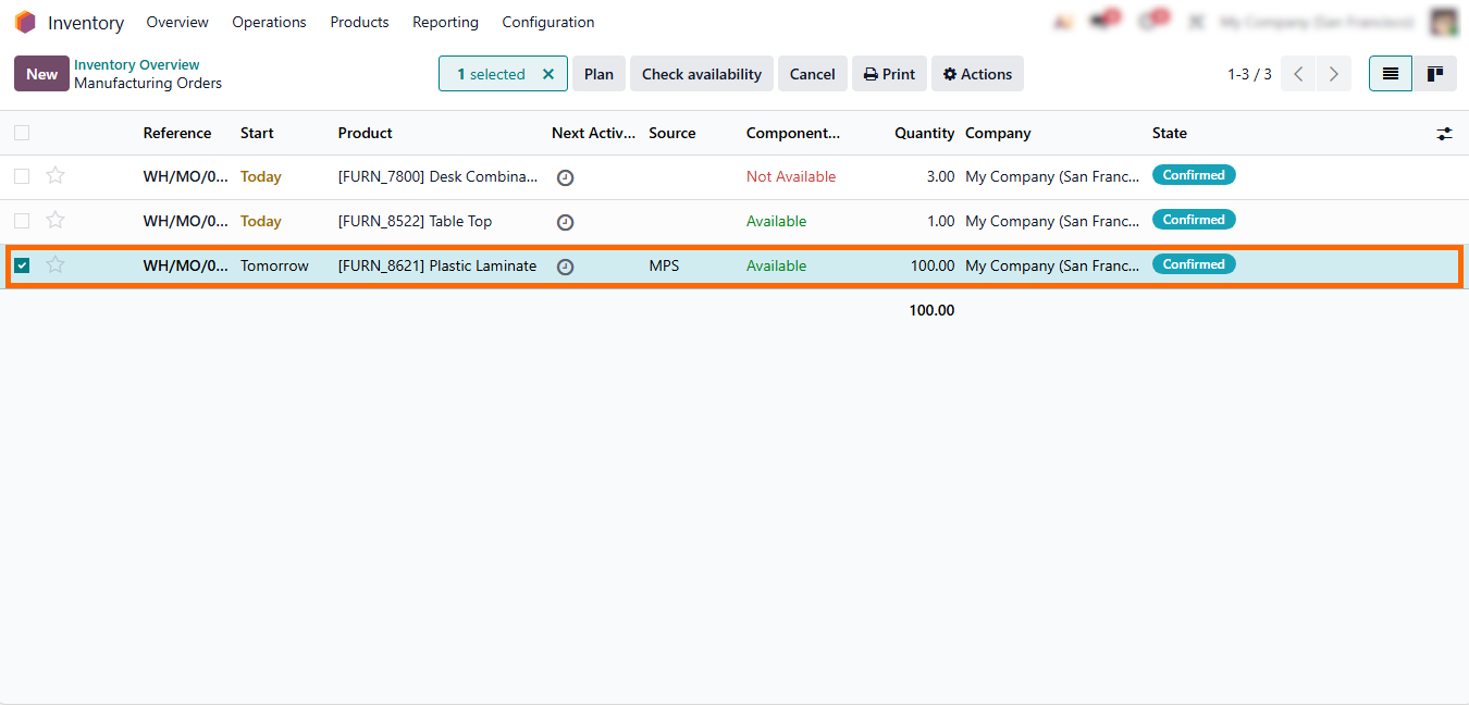 Even the most accurate forecast fails if the factory cannot execute it. Odoo’s manufacturing planning tools help validate capacity limits, component availability, and realistic lead times before finalizing the master planning schedule. This ensures every master production schedule example or sample master production schedule aligns with material readiness and work-center capacity – critical for strong MPS operations management. Adjusting the master production schedule calculation based on bottlenecks or supplier variability keeps the plan feasible and cost-efficient.